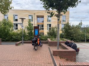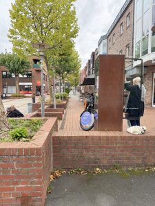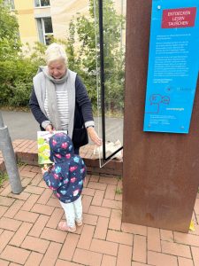 Für den Besuch am Bücherschrank in Meckenheim, meiner 10. Station, habe ich extra Bücher mitgebracht. 2015 wurde der Bücherschrank von Westenergie gesponsored und ist zu einem beliebten Treffpunkt am Le-Mée-Platz geworden. Die Bücher, ebenfalls gesponsored von Westenergie, wurden auch direkt durchstöbert. Ein Kind wurde fündig und nahm ein neues Bilderbuch mit.